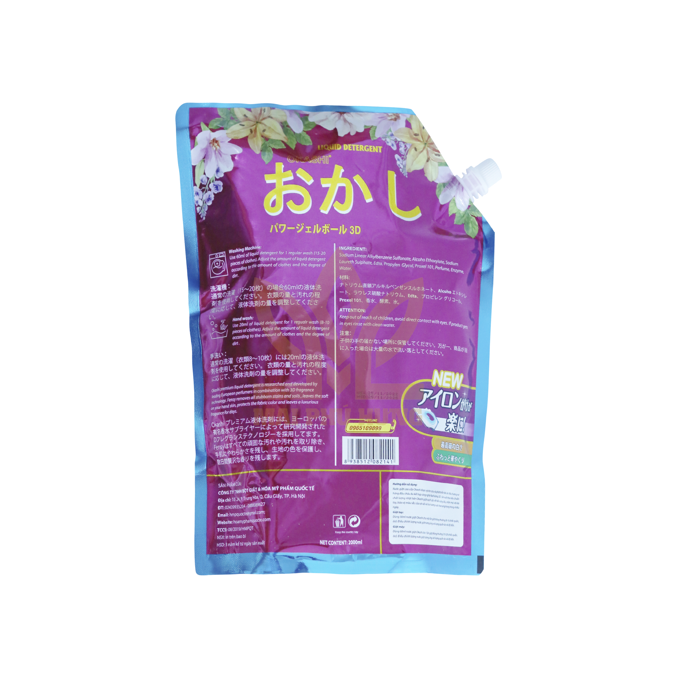 Không đổ trực tiếp nước giặt lên quần áo. Để xa tầm tay trẻ em.