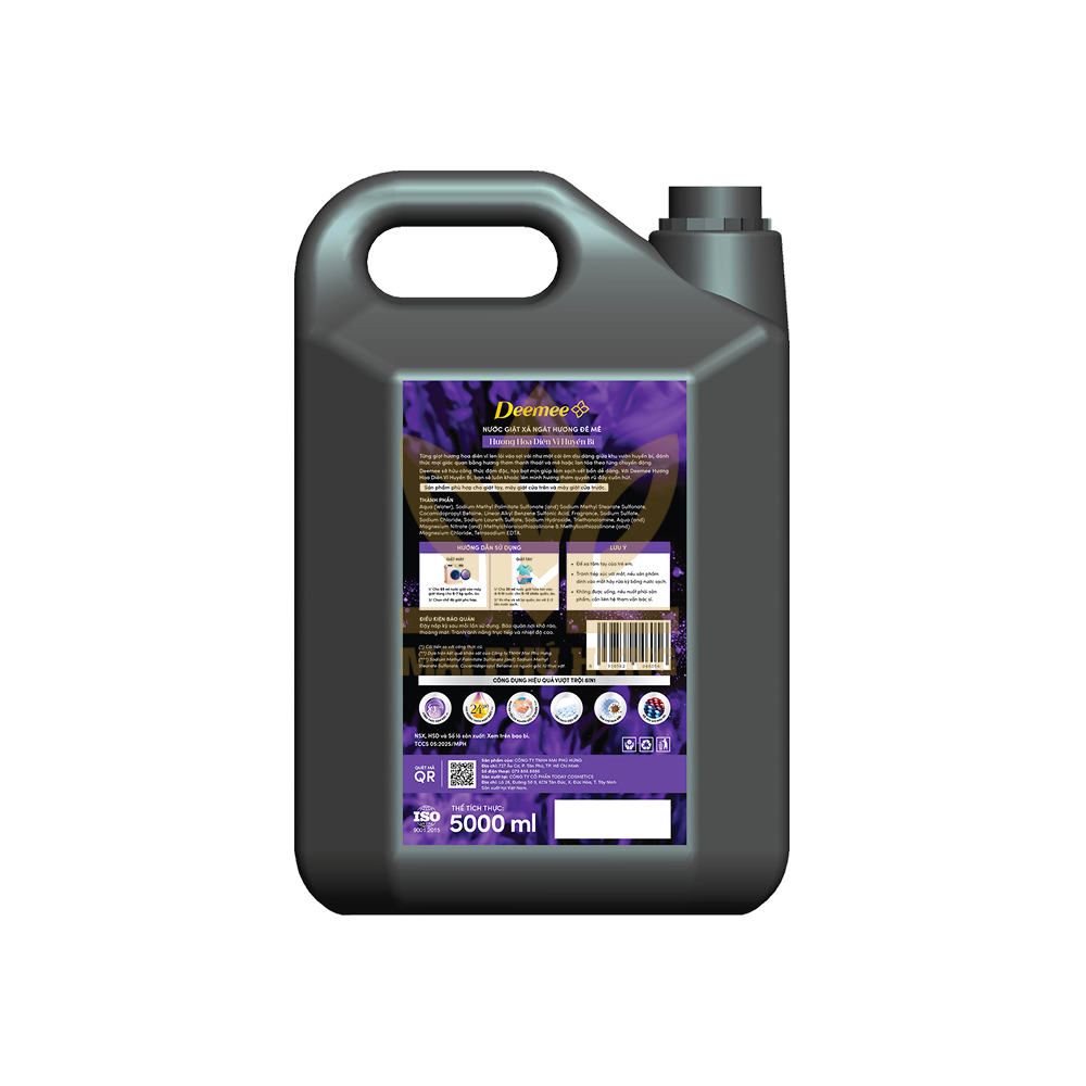 Nước Giặt Xả Deemee Hương Hoa Diên Vĩ 5000ml với từng giọt hương hoa diên vĩ len lỏi vào sợi vải như một cái ôm dịu dàng giữa khu vườn huyền bí, đánh thức mọi giác quan bằng hương thơm thanh thoát và mê hoặc lan tỏa theo từng chuyển động. Sản phẩm ứng dụng công nghệ lưu hương thông minh từ Thái Lan, giúp giữ mùi thơm bền lâu hơn 24 giờ.