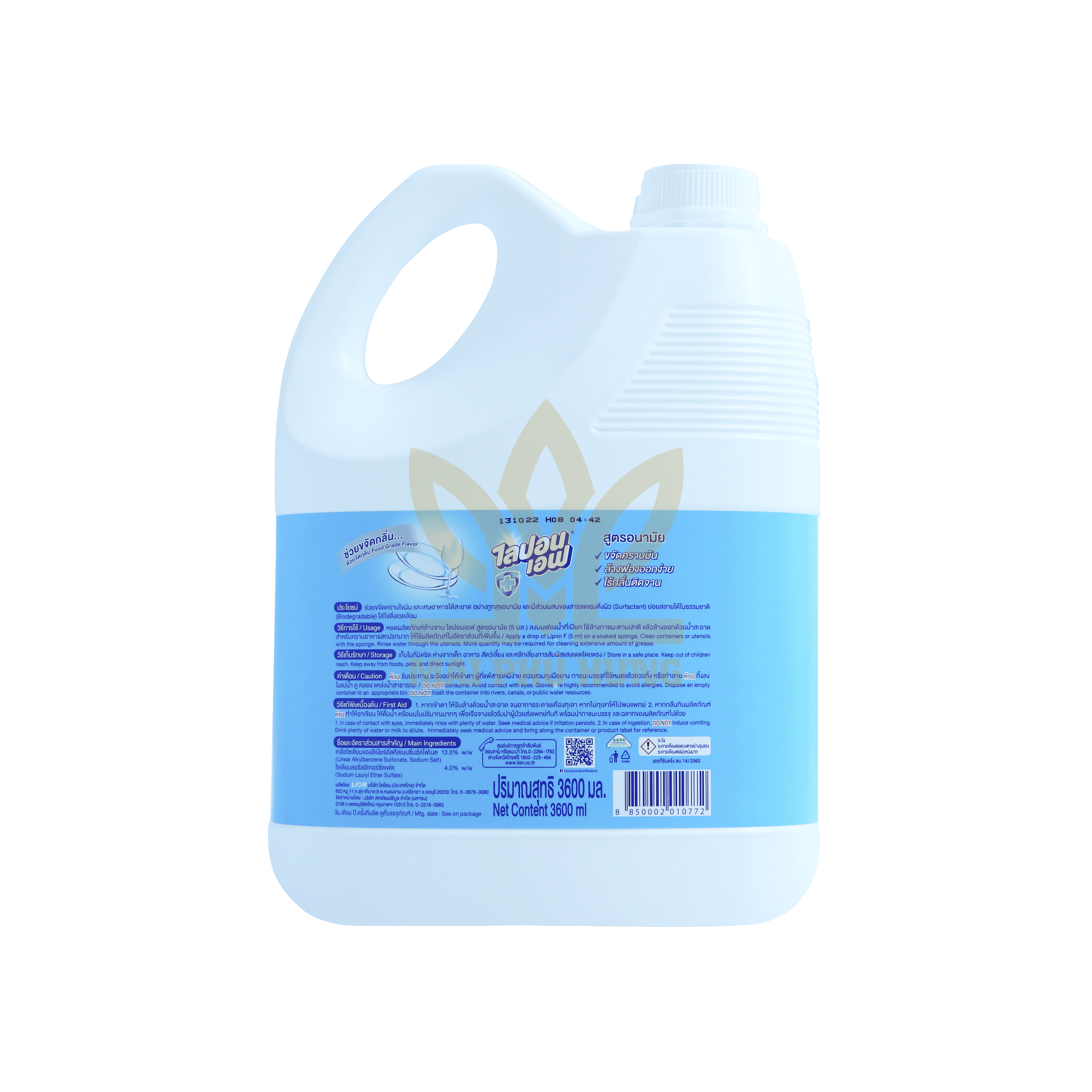 Nước Rửa Chén Lipon F Không Mùi Can 3600ml được sản xuất trên dây chuyền công nghệ hiện đại theo nhượng quyền của Lion Nhật Bản. Với công thức đặc biệt giúp đánh bay dầu mỡ và khử mùi hiệu quả giúp đồ dùng nhà bếp và chén bát được sạch bóng. Đặc biệt, không hại da tay, không mùi và hoàn toàn không độc hại.