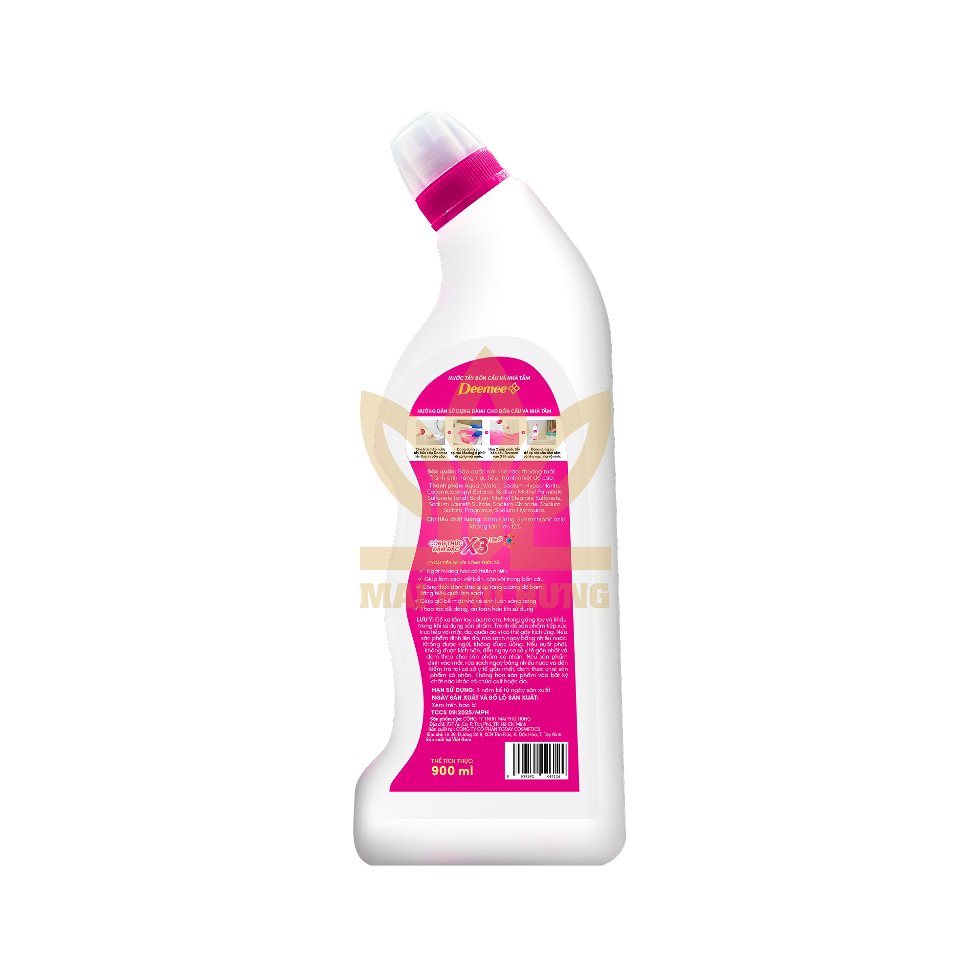 Nước Tẩy Bồn Cầu Deemee Hương Hoa Cỏ Thiên Nhiên sở hữu công thức đậm đặc gấp 3 lần, cho khả năng đánh bay vết ố vàng, cặn vôi và vi khuẩn một cách nhanh chóng.