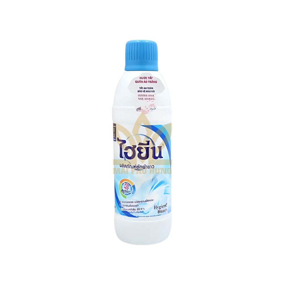Nước Tẩy Quần Áo Hygiene Cho Quần Áo Trắng Chai 600ml với công dụng diệt khuẩn, tẩy sạch những vết bẩn khó tẩy dính trên quần áo trắng, giúp quần áo trắng sạch như mới mà bột giặt thường không thể tẩy được.