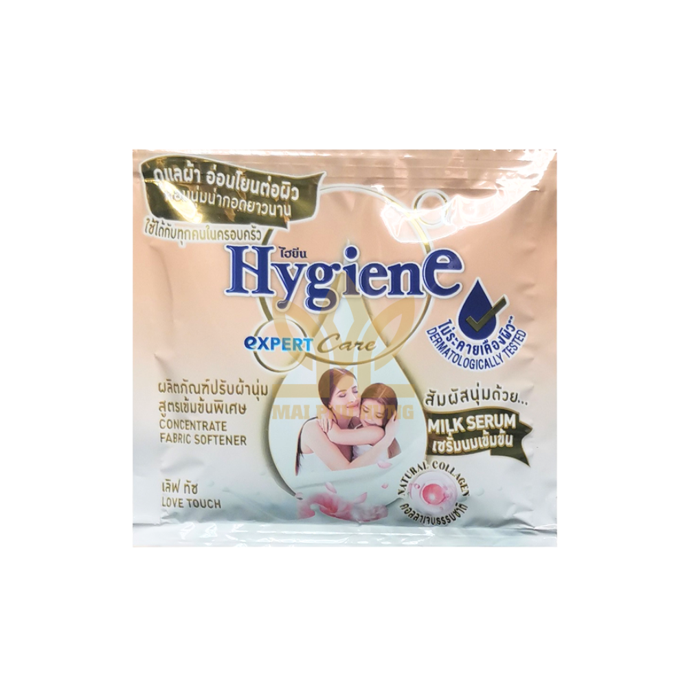 Nước xả Hygiene Expert Care Love Touch với nguyên liệu bổ sung collagen, hương sữa và hoa hồng giúp quần áo bền lâu và giữ dáng cho quần áo. Công thức đặc biệt làm cho quần áo mềm mại hơn và thân thiện với da tay, lưu hương thơm ngát ngày dài.